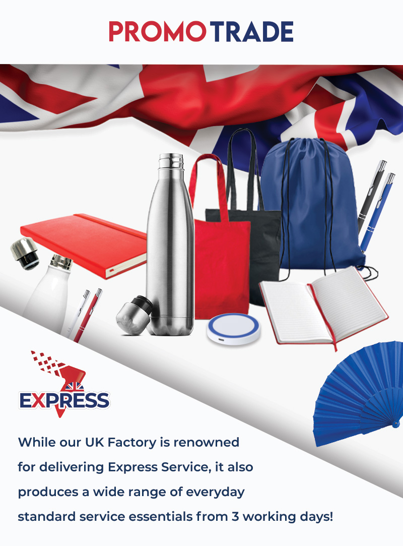 Explore our Express range, which includes printed products such as water bottles, lanyards, bags, badges, chargers, and more. This range is perfect for those who require quick turnaround times, with lead times as short as 1 working day.